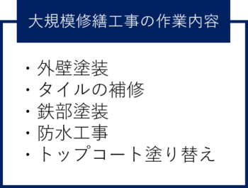 大規模修繕工事の主な作業内容は以下の通りです👇🏻